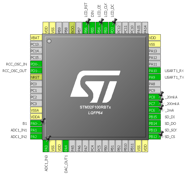 Назначение выводов микроконтроллера при подключении периферийного оборудования.