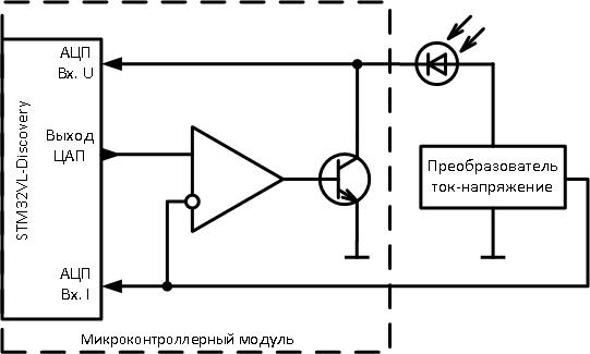 В состав экспериментальной установки для определения характеристик солнечных элементов входит микроконтроллерный модуль (МКМ). МКМ предназначен для получения экспериментальных нагрузочных вольтамперных характеристик (ВАХ) солнечных элементов в автоматическом режиме.